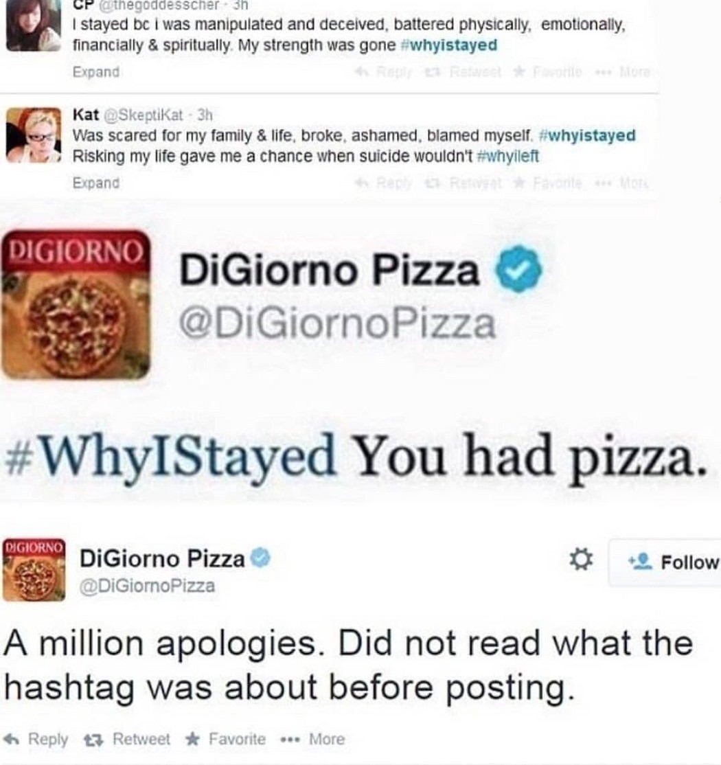 Once again, doing a bit of research before creating and posting a meme is of the utmost importance. This meme went terribly wrong because the company did not check what the popular hashtag was referring to before posting it on Twitter, and the result was an understandable backlash.